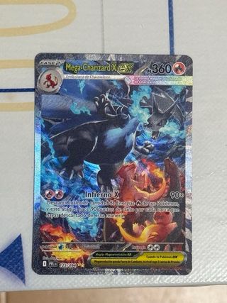 Carta de Pokémon Mega Charizard EX. - Ataque Infierno X con daño variable. - Habilidad Megaevolución. - Incluye información sobre la retirada y debilidad. - Número de carta: 125/094. PRECIO NEGOCIABLE
