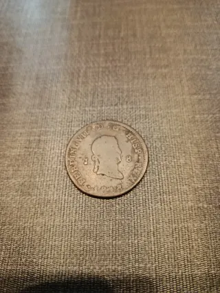 Moneda antigua de 8 maravedíes del año 1818 de la época de Fernando VII REVERSO: Muy bien conservado, con el escudo de castillos y leones y las flores de lis centrales con relieve nítido. ANVERSO: Desgastado por el uso, se distingue la silueta del monarca pero el rostro está liso Pieza con más de 200 años de historia, ideal para iniciarse en la numismática clásica.