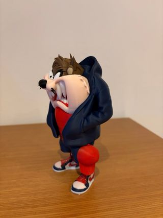 Figura en impresion 3d. - Diseño detallado del Demonio de Tasmania. - Ropa de estilo urbano con zapatillas deportivas. - Gorra roja incluida. - 16cm de altura