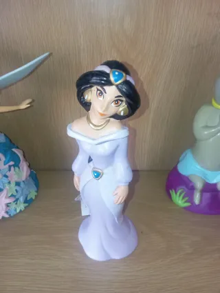 Figura de la princesa Jasmine de Walt Disney, original de los años 90. Un artículo de colección para los amantes de la animación clásica. De la película Aladín Es una botella de colonia con etiqueta original - Diseño detallado de la princesa. - Colores vibrantes y acabados cuidados.