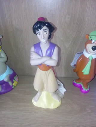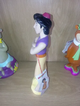Figura coleccionable del personaje Aladín, de los años 90. Botella de colonia con etiqueta original Mas figuras en mi perfil - Diseño inspirado en la película. - Colores vibrantes.