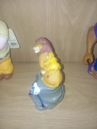 Figura coleccionable de El Rey León de Disney, de los años 90. Representa a Simba, Mufasa y Rafiki. Es una botella de colonia Mas figuras en mi perfil - Personajes: Simba, Mufasa, Rafiki. - Material: Plástico. - Diseño inspirado en la película.