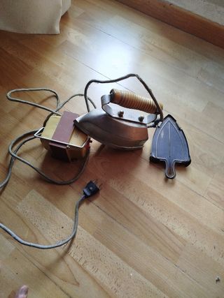 Plancha eléctrica antigua de la marca Ufesa, con su base. - Diseño clásico en metal y madera. - Cable de alimentación con enchufe. También incluye un transformador aunque no le hace falta, se vende todo el lote entero
