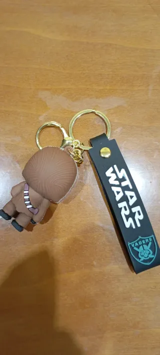Llavero con figura de Chewbacca de Star Wars. - Diseño detallado del personaje. - Incluye correa negra con logo de Star Wars y Vaders.