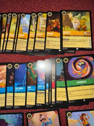 Colección Disney Lorcana TCG Trading cards Game Lote de 75 cards sin repetir Son de la expansión: The first Chapter (36 cards) Rose of the Floodborn (22 cards) Into the Inklands (17 cards) Todas en perfecto estado. Entrego en mano en Madrid Palabras clave Disney cards fichas TCG Trading cards game cromos tarjetas primera edición first edition lorcana enchanted 1st edición hobby box sobre booster pack caja sellada Pokémon sin abrir edición limitada limited blister Yugioh Yi-Gi-oh! magic Digimon liga Adrenalyn este megacracks panini topps Match attax