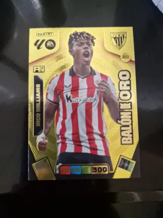 Tarjeta Adrenalyn de Nico Williams, edición Balón de Oro. Perfecto estado. - Edición especial dorada. - Número de colección: 469. - Incluye estadísticas del jugador.