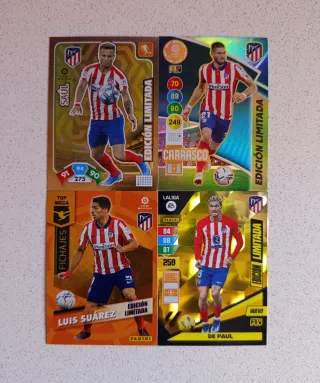 Lote de 4 cards EDICIÓN LIMITADA del Atlético de Madrid de distintas colecciones de ADRENALYN XL y MEGACRACKS. - Cromos de Saúl, Carrasco, Luis Suárez y De Paul. - Incluye estadísticas y detalles de cada jugador. - Perfectos para coleccionistas del fútbol. VER FOTOS!!! EDL ATLÉTICO DE MADRID...