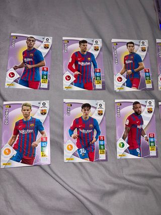 Colección de cromos de la Liga Adrenalyn XL de la temporada 2021-22 del FC Barcelona. Todos los jugadores 0,30€. Se puede vender por separado. Repetidos 0,15 más. - Cromos de jugadores como Dest, Piqué, Eric García, De Jong, Gavi y Depay. - Incluye estadísticas y detalles de cada jugador.