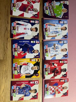 Muchos repes, pide tus faltas. Precios por unidad * Básicos 20 cts * Escudos 25 cts * Energy 35 cts. * Diamantes y Master class 50 cts * Blindados, guantes de oro 70 cts. * Imparables 1 euro * Super cracks 1,50 euros * Balón de Oro, consultar. * campeón card , 2.5 euros. * Momentum Lewandowski 15 euros * Momentum Benzema 30 euros * Entrenadores 50 cts * Bises y actualizaciones 50 cts. * Nuevo Energy 1 euro * Nuevo diamantes 2 euro. * Nuevo bravo 2,5 euro * Nuevo máster class 2 euros se pueden hacer lotes personalizados. Gastos de envío a cargo del comprador.