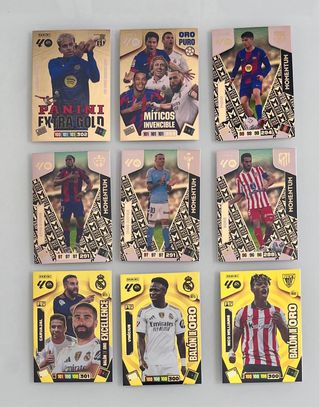 Colección de cromos Panini Adrenalyn XL de las temporadas 2025 y 2026. - Incluye cromos de la serie Extra Gold. - Cromos de Aupa Atleti y Míticos Invencibles. - Cromos de jugadores como Lamine Yamal, Mbappé, Pedri, Carvajal y más.