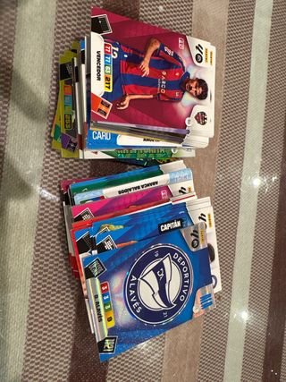 Lote de cromos de Adrenalyn XL de la temporada 2025-2026. El lote incluye 300 cromos sin repetir. Hay cromos de todos los tipos (base, escudos, campos, supercracks, peotas, diamantes, vamos...) Ideal para empezar la colección.