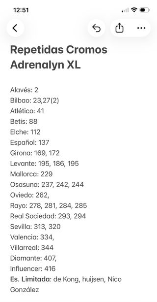 Se venden 95 cromos, sin repetir, de la colección Adrenalyn XL 2023/24. Están en perfecto estado. Incluye cromos de jugadores de la liga y especiales. En las fotos se puede ver el número de cada cromo. Ideales para coleccionistas.