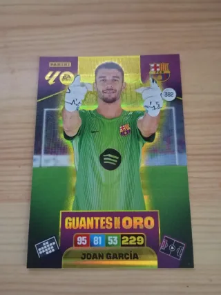 Cromo de Joan García de la colección Adrenalyn XL 2025-2026, con la categoría 'Guantes de Oro'. - venga urgente! - Número de cromo: 382 - ❌ Precio no negociable. - Venta solo en persona y en efectivo