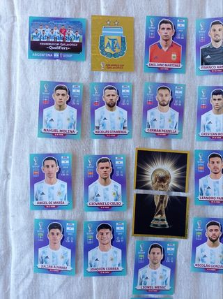 Vendo lote completo de cromos de Panini de la selección de Argentina de la colección del Mundial de Qatar 2022!! Selección campeona del Mundo!!! Incluyo el cromo doble del trofeo del Mundial! Nuevos sin pegar, recién sacados de sus sobres! Ideal para coleccionistas!! Más artículos de coleccionismo deportivo en mi perfil!! Panini, Mundicromo, Este, Estadio, Adrenalyn, Oryx, Mundial, Qatar, Maradona, Messi, Ronaldo, Mbappe, Bollycao, Bimbocao, Panrico, Bimbo, Pascual, Pokémon, Boomer, Dunkin, Matutano, Grefusa, tazos, Dragon Ball Z.