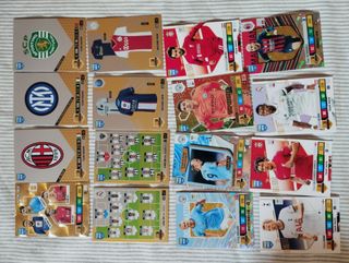 Colección de cromos de fútbol Panini Adrenalyn XL. Incluye varios jugadores y escudos de equipos. - Cromos de la temporada. - Diversos jugadores y equipos. - Ideal para coleccionistas.