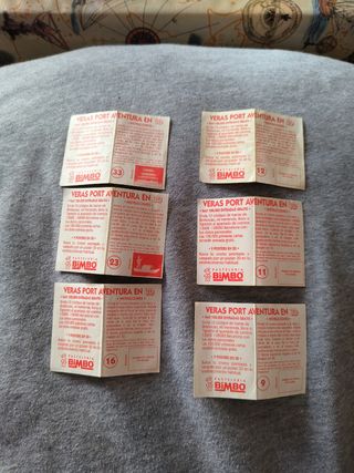 Se venden 6 cromos de la promoción Verás PortAventura en 3D de Bimbo. Son cromos antiguos Incluyen 5 cromos con imágenes variadas y 1 con efecto lenticular. Están en buen estado, aunque algunos pueden mostrar señales de uso. Precio por unidad : 5€ Lote: 20 Compra mínima 15 euros si tengo que enviar