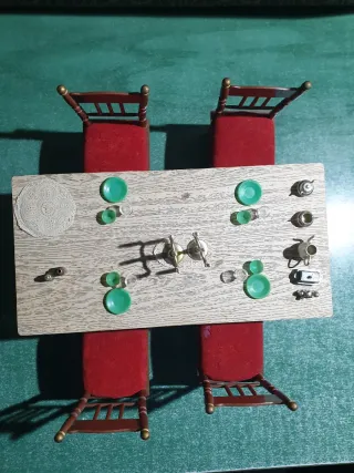 Mesa y sillas de comedor Vintage Pedigree Sindy. Mesa comedor con sillas y accesorios, (tenedores, cucharas, cuchillos, candelabros, platos, etc). ESTADO SEGÚN FOTOS. Si tienes cualquier duda o necesitas mas fotos, no dudes en ponerte en contacto conmigo. SE ACEPTA OFERTAS O CAMBIO POR CROMOS O ALBUMES DE FÚTBOL ANTIGUOS como todos mis lotes.