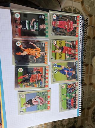 Vendo 8 cromos de fútbol de la Champions League. Son cromos brillantes y están en buen estado. - Incluyen jugadores como Van Dijk, Ter Stegen y Wirtz. - Perfectos para coleccionistas o aficionados al fútbol. - Se escuchan ofertas tanto económicas como de cambio tanto en cartas individuales como el lote