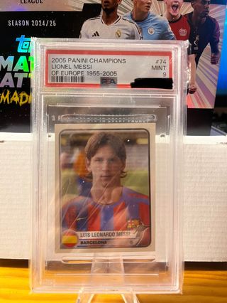 Leo Messi 1955-2005 primer sticker de la champions league Espectacular tarjeta de Lionel Messi Panini Champions de 2005, calificada con un PSA 9. La tarjeta está en excelentes condiciones. - Edición 2005 Panini Champions. - Número de la tarjeta #74. - Calificación PSA 9 (Mint). - Muestra a un jovencísimo Leo Messi rookie 7 No leer : albumes adrenalyn, megacracks , gavi , pedri , vinicius, topps, firmada , edicion especial, ansu fati , liga este, match attax , real madrid , messi , neymar , mbappe , haaland, album de futbol, cromos , albumes de futbol , lamine, auto, 71 bis, la liga...