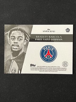 Tarjeta de colección de Bradley Barcola de Topps. - Rookie Card (RC). - Edición Champions League. - Club Paris Saint-Germain (PSG). Se hacen envíos a toda España, acepto intercambio por otra cosa PSG, Messi, haaland, fútbol, cromo, Barcelona, Francia, Mbappé, Ronaldo, rookie, card, Panini,