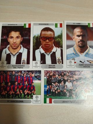 Lote cromos jugadores de fútbol. Champions League 2000/2001. Copa de Europa Ideal para coleccionistas y nostálgicos de la época. - Equipos representados: Juventus FC, S.S. Lazio y FC Barcelona. - Temática: UEFA Champions League. - Incluye cromos de jugadores como Alessandro Del Piero, Edgar Davids y Juan Sebastián Verón. Jugadores y plantillas icónicas. Muy buen estado. De mi colección. Siempre bien cuidados y protegidos. Difícil de encontrar. Trato en mano en Barcelona. No envíos. No Bizum
