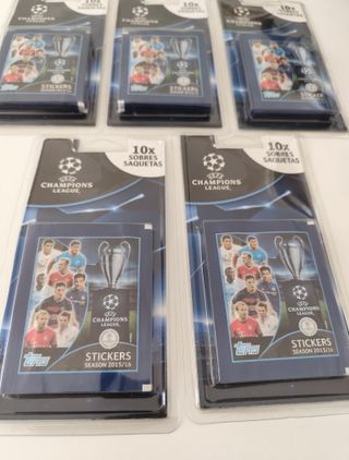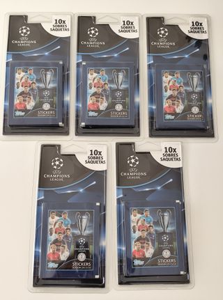 5 blisters con 10 sobres packs en cada uno. Total: 50 sobres de cromos colección UEFA Champions League 2015 2016 Topps. Cada sobre contiene 5 stickers. Total 250 cromos. Gastos de envío por cuenta del comprador no incluidos en el precio. Se acepta compra a través de Wallapop. Otras formas de pago admitidas: transferencia, PayPal o Bizum.