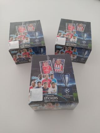 Lote colección stickers UEFA Champions League 2015 2016 Topps. - x3 Cajas precintadas con 50 sobres de cromos en cada una. Cada sobre contiene 5 stickers. 250 cromos en cada caja. - álbum plancha vacío. Gastos de envío por cuenta del comprador no incluido en el precio. Se acepta compra a través de Wallapop. Otras formas de pago admitidas: transferencia, PayPal o Bizum.