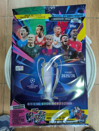 Pack de inicio de la colección oficial de cromos de la Champions League temporada 2025/26. - Incluye álbum y sobres de cromos. - Contiene 1 bonificación/bonus. - Cromos de reliquia con camisetas reales usadas por jugadores.