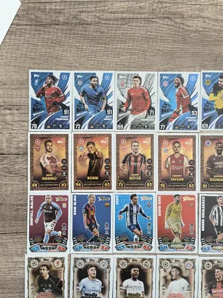 Colección de cromos de la Champions League. - Cromos de la colección Match Attax. - Incluye jugadores como Kevin De Bruyne, Hakan Çalhanoğlu, Martin Ødegaard y otros. - Varios cromos de Man of the Match y Signature Style.
