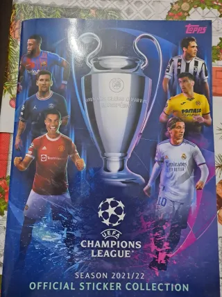 Colección oficial de cromos de la UEFA Champions League de la temporada 2021/2022. Algunas mal pegadas - Portada con los mejores jugadores. - Incluye el trofeo de la Champions League. - Diseño llamativo con detalles en rosa y azul.