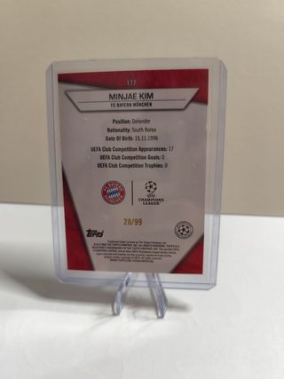 Cromo de fútbol de Minjae Kim, jugador del FC Bayern Múnchen. - Serie Ultra Rare. - Edición Champions League.