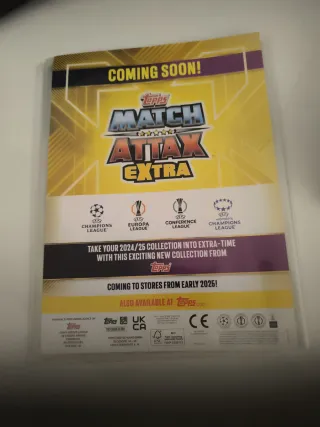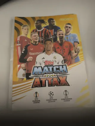 Álbum de cromos de fútbol Match Attax para la temporada 2024/2025. Incluye los escudos de la UEFA Europa League, Champions League y Conference League. - Portada con jugadores destacados. - Temporada 2024/25.