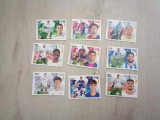 Colección de cromos de La Liga EA Sports. - Incluye cromos de Balón de Oro y Invencible. - Algunos cromos son de Champions. - Diversos jugadores de equipos como Real Madrid, FC Barcelona y Atlético de Madrid.