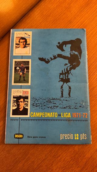 Álbum de cromos del Campeonato de Liga de la temporada 1971-72. Los cromos están solo pegados en la parte superior. Faltan solo 6 cromos de jugadores y 5 stickers del póster central.