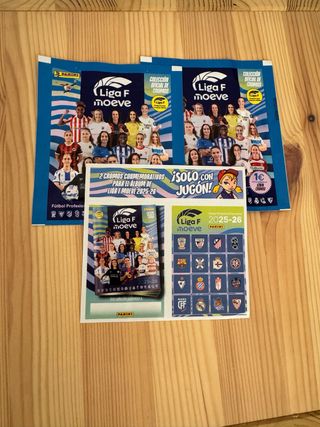 Lote de 2 sobres y cromos conmemorativos de la Liga F Moeve de la temporada 2025-26. - Incluye cromos conmemorativos. - Edición especial de la Liga F.