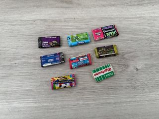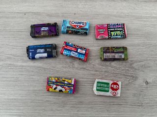 8 envoltorios de chicles cerrados sin abrir de distintas marcas. Vidal, Movie Gum, Algo Bueno, Liga... El precio es por el lote. Si quieres alguno suelto, avísame. Estarán entre 5 y 8 euros de precio. Los que traían cromo, lo siguen conteniendo. Bubble Goal, Hotel Transilvania, Tortugas Ninja, Operación Trinfo, Vidal Champs, Algo Bueno, El mejor chicle de fútbol Liga 97-98... Gastos de envío de 5 euros por MRW. Las fotos son la descripción. Palabras clave: Boomer, chicle, chicles, Fleer, Cheiw, Damel, Vidal, Jake, General de Confitería, Cerdán, Fini, Topps.