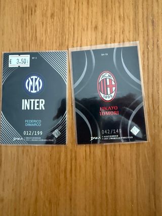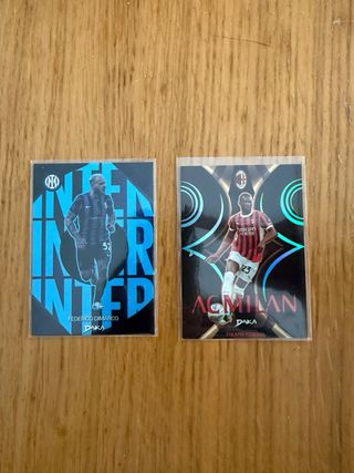 Dos cromos numerados de DAKA, uno del AC Milan y otro del Inter de Milán. - Cromo AC Milan: Fikayo Tomori, número 042/149. - Cromo Inter de Milán: Federico Dimarco, número 012/199. . . . . . Cromos, PSA, futbol, baloncesto, basket, stephen curry, messi, barcelona, gradeada, 10, lamine yamal, funko pop, exclusivo, coleccionismo, coleccionista, panini, PS5, figuritas, one piece, damon slayer, Pix, F1, pedri, FIFA, NBA, 2k, prizm, auto, patch, parche, numeradas, firma, autografo, premier league, arsenal, liverpool, PSG, balón firma, firmado, trozo de camiseta, game, juego, partido, worn, focus, deco, argentina, inception