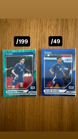 Dos tarjetas de colección de la selección italiana de fútbol. - Tarjeta de Federico Chiesa, numerada 193 de 199. - Tarjeta de Nicolò Barella, numerada 18 de 49. . . . . . . Cromos, PSA, futbol, baloncesto, basket, stephen curry, messi, barcelona, gradeada, 10, lamine yamal, funko pop, exclusivo, coleccionismo, coleccionista, panini, PS5, figuritas, one piece, damon slayer, Pix, F1, pedri, FIFA, NBA, 2k, prizm, auto, patch, parche, numeradas, firma, autografo, premier league, arsenal, liverpool, PSG, balón firma, firmado, trozo de camiseta, game, juego, partido, worn, focus, deco, argentina, inception