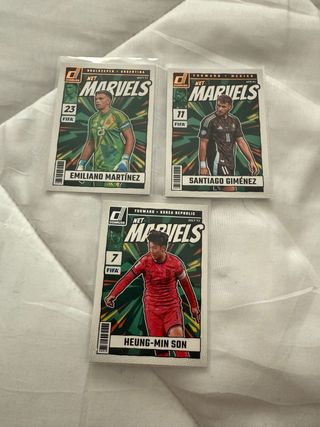 Lote de 3 cartas de fútbol de la colección Donruss Net Marvels. - Emiliano Martínez (Portero, Argentina) - Santiago Giménez (Delantero, México) - Heung-Min Son (Delantero, Corea del Sur) . . . . . Cromos, PSA, futbol, baloncesto, basket, stephen curry, messi, barcelona, gradeada, 10, lamine yamal, funko pop, exclusivo, coleccionismo, coleccionista, panini, PS5, figuritas, one piece, damon slayer, Pix, F1, pedri, FIFA, NBA, 2k, prizm, auto, patch, parche, numeradas, firma, autografo, premier league, arsenal, liverpool, PSG, balón firma, firmado, trozo de camiseta, game, juego, partido, worn, focus, deco, argentina, inception,