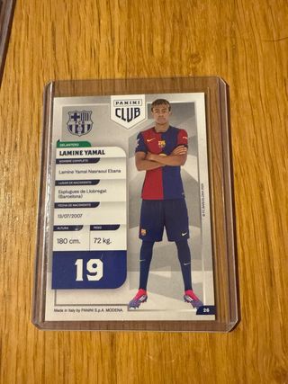 Tarjeta de colección de Lamine Yamal de Panini Club. - Diseño del FC Barcelona. - Incluye el nombre del jugador y el escudo del club. . . . . . . Cromos, PSA, futbol, baloncesto, basket, stephen curry, messi, barcelona, gradeada, 10, lamine yamal, funko pop, exclusivo, coleccionismo, coleccionista, panini, PS5, figuritas, one piece, damon slayer, Pix, F1, pedri, FIFA, NBA, 2k, prizm, auto, patch, parche, numeradas, firma, autografo, premier league, arsenal, liverpool, goykeres, martinelli, champions league, focus, reverence, balon de oro, museum, inception. Rookie card
