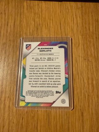 Carta coleccionable de Alexander Sorloth. - Edición limitada numerada /275. - Incluye el logo de la Champions League. - Pertenece a la colección Finest. . . . . . . Cromos, PSA, futbol, baloncesto, basket, stephen curry, messi, barcelona, gradeada, 10, lamine yamal, funko pop, exclusivo, coleccionismo, coleccionista, panini, PS5, figuritas, one piece, damon slayer, Pix, F1, pedri, FIFA, NBA, 2k, prizm, auto, patch, parche, numeradas, firma, autografo, premier league, arsenal, liverpool, goykeres, martinelli, champions league, focus, reverence, balon de oro, museum, inception. Rookie card