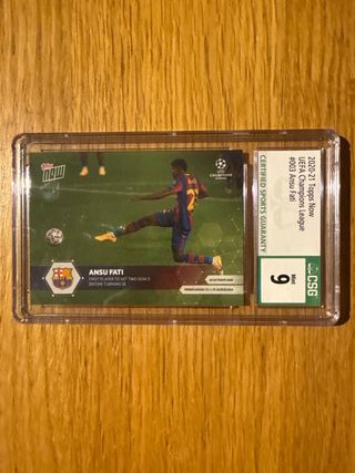 Tarjeta de colección CSG 9 de Ansu Fati de la UEFA Champions League. - Jugador: Ansu Fati. - UEFA Champions League. - Récord: Primer jugador en marcar dos goles antes de cumplir 18 años. . . . . . . Cromos, PSA, futbol, baloncesto, basket, stephen curry, messi, barcelona, gradeada, 10, lamine yamal, funko pop, exclusivo, coleccionismo, coleccionista, panini, PS5, figuritas, one piece, damon slayer, Pix, F1, pedri, FIFA, NBA, 2k, prizm, auto, patch, parche, numeradas, firma, autografo, premier league, arsenal, liverpool, goykeres, martinelli, champions league, focus, reverence, balon de oro, museum, inception. Rookie card