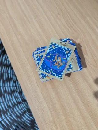 Colección de cromos de Aladín de Panini. Revive la magia de la película con estas cartas. - Ilustraciones inspiradas en la película. - Diseño con estrellas y motivos árabes. Un total de 79 cromos, algunos repetidos, algunos tienen marca de goma. La mayoría están en perfectas condiciones como se ve en fotos