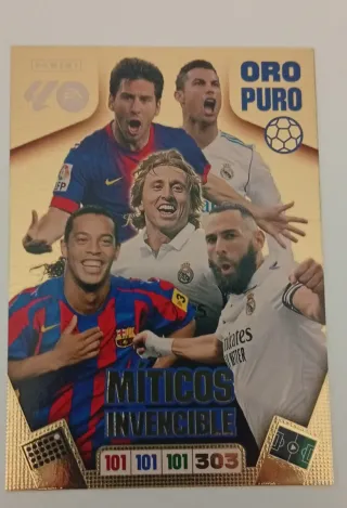 Colecciona este cromo de Panini EA Sports FC 24. - Diseño dorado. - Incluye a varios jugadores. - Edición Card Invencible.