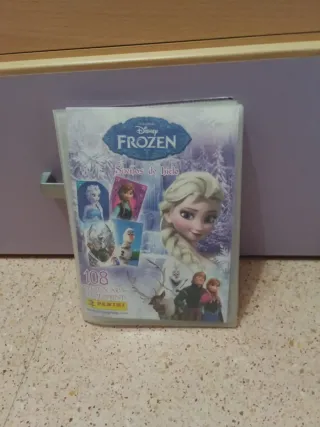 Álbum de cromos coleccionables de Disney Frozen, edición Sueños de Hielo. - Contiene 108 cromos. - Incluye personajes como Elsa, Anna, Olaf y Kristoff. - Producto de la marca Panini.