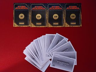 6 sobres sin abrir y 3 cromos de un sobre que abrí de Panini y el folleto promocional de Carrefour.