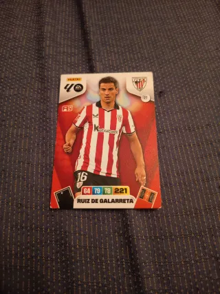 Cromo de fútbol Panini Adrenalyn XL. - Jugador: Ruiz de Galarreta. - Número: 16. - Estadísticas: 64, 79, 78, 221. - Club: Athletic Club.
