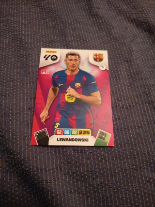 Cromo de fútbol Panini Adrenalyn XL del jugador Lewandowski. - Incluye estadísticas del jugador. - Diseño del equipo FC Barcelona.