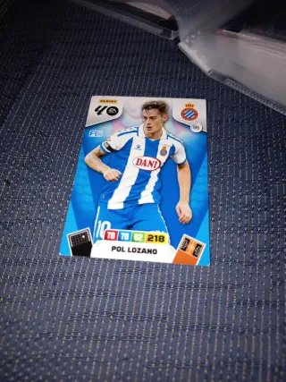 Cromo de fútbol Panini Adrenalyn XL del jugador Pol Lozano. - Número de carta: 135 - Estadísticas: 78, 78, 62, 218