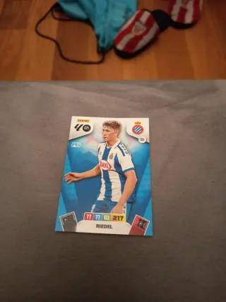 Cromo de fútbol Panini Adrenalyn XL. - Jugador: Riedel - Número de carta: 132 - Puntos: 77, 77, 63, 217